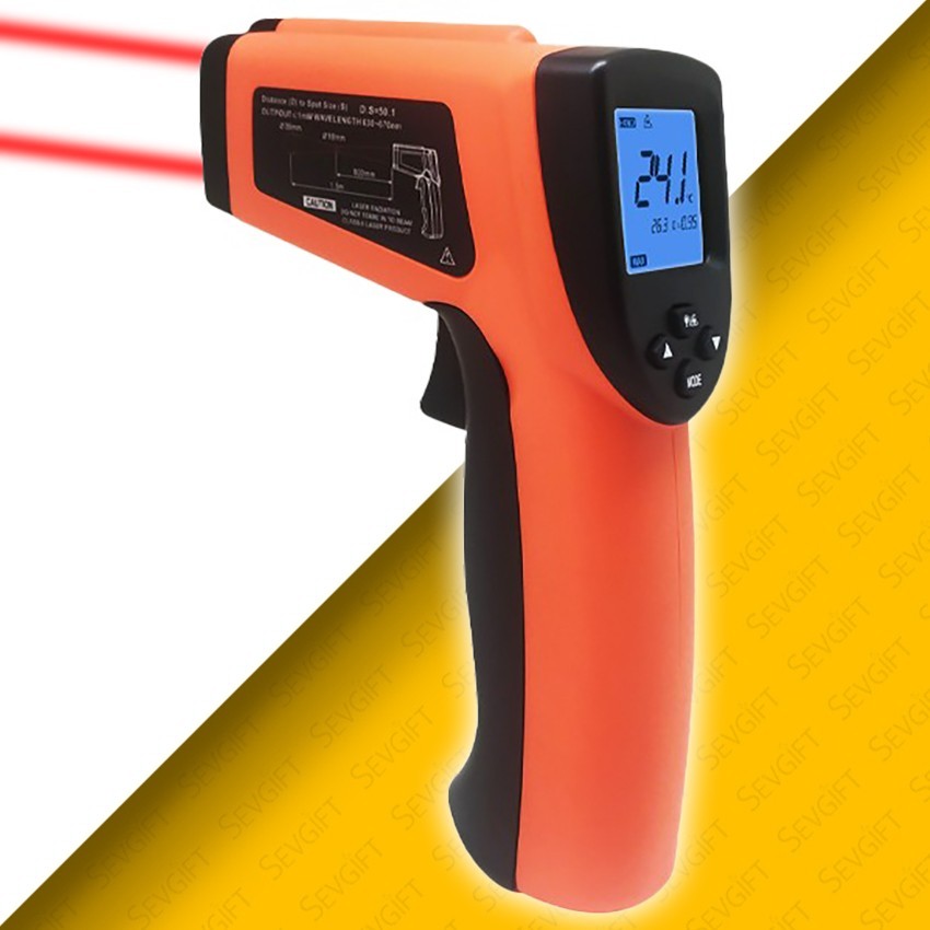 Cem DT-820V lazerli sıcaklık ölçer cihazımız tek düğmeye basarak -50°C 'den 500°C' ye kadar temassız sıcaklık ölçümü yapabilen tek lazer ışığı hedeflemeli kızılötesi termometredir.