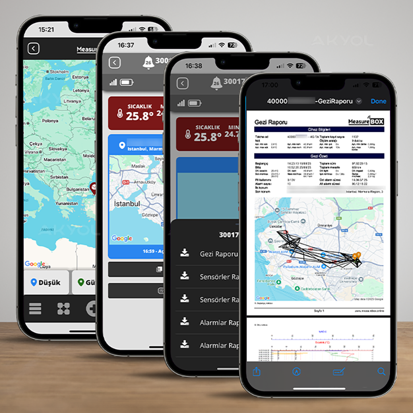 - "MeasureBox" mobil uygulaması sayesinde, sıcaklık ve konum takibi mobil cihazlar üzerinden hızlı, güvenli ve kullanıcı dostu bir şekilde yapılabilir.