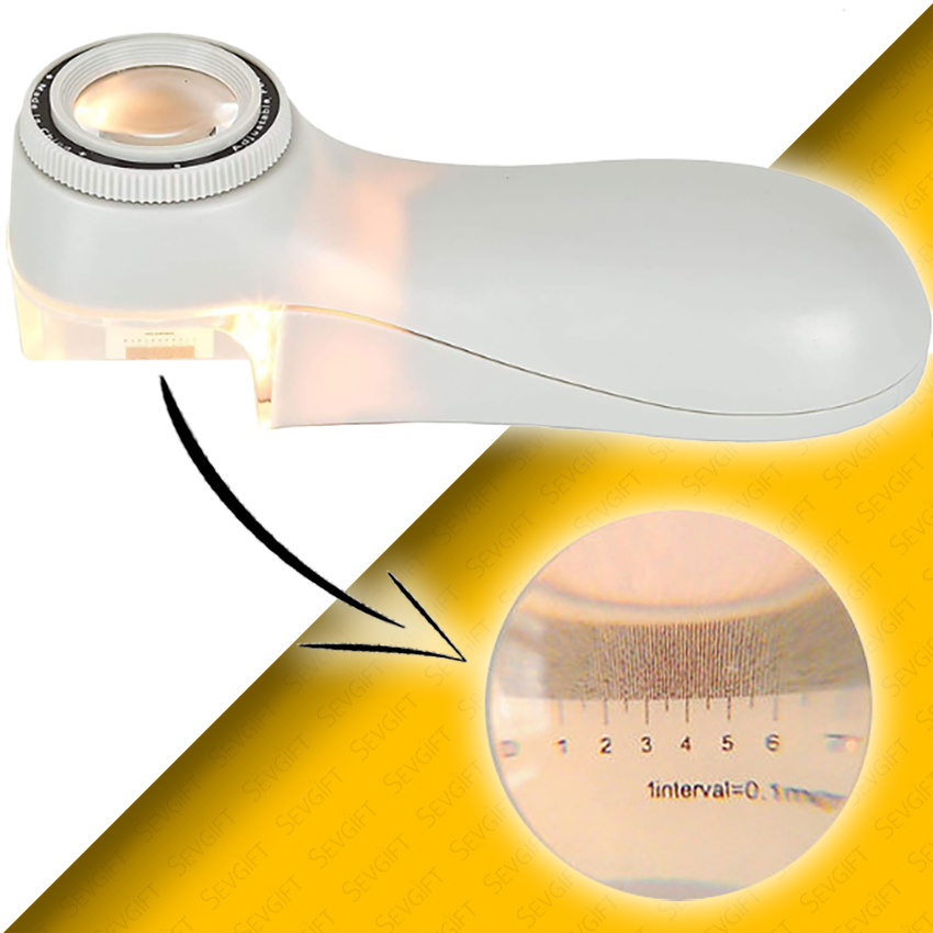 Skalalı mini büyüteç; ekstra netlik ve keskinlik sağlayan, 45x yakınlaştırma yapabilen, 1 cm uzunluğunda ölçü skalalı, çok pratik bir ledli büyüteçtir.