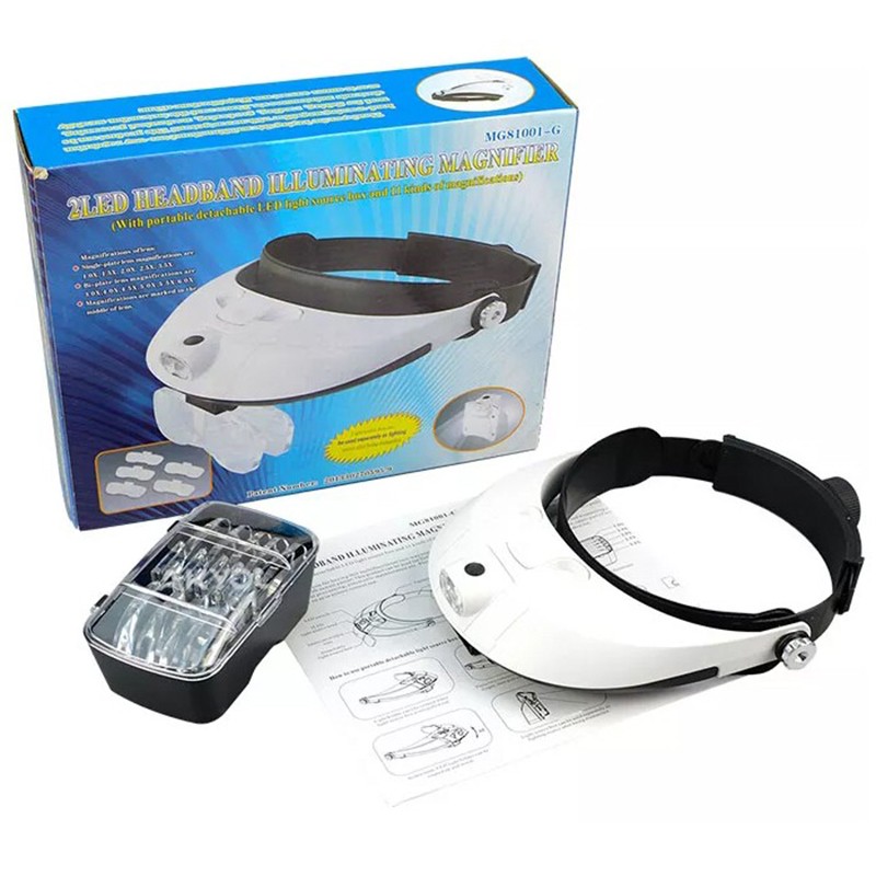 MG81001-G led ışıklı gözlük kafa büyüteci; birbirinden farklı ölçeklerde 5 adet merceğe sahip, saatçilerin, elektronik devre tamiri yapanların, kuyumcuların sıklıkla kullandığı led ışıklı kafa tipi gözlük büyüteçtir.