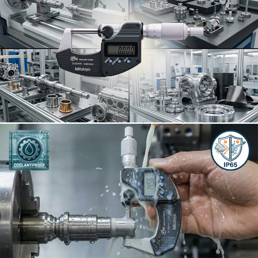 IP65 korumalı hassas ölçüm cihazıdır. Soğutma sıvısı ve tozlu ortamlara dayanıklı yapısı, karbür ölçme yüzeyleri ve ratchet stop sabit ölçme kuvveti sistemi