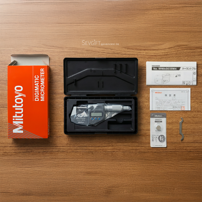 Ürün kutu içeriği; 1 adet mikrometre, 1 adet taşıma kutusu, kullanım kılavuzu, üretici test belgesi, 1 adet SR44 pil ve 1 adet ayar anahtarı (spanner)