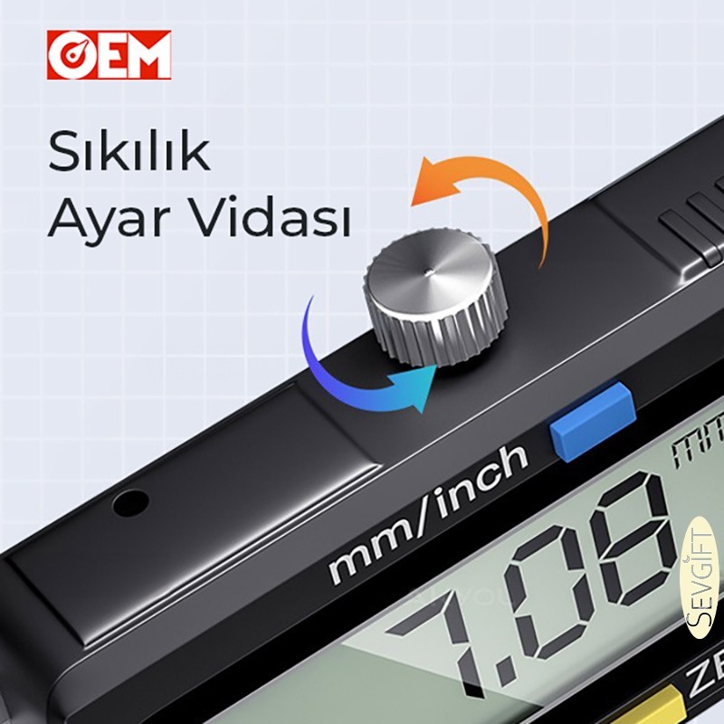 - OEM KMP150 Dijital Kumpas; hem iç çap, hem dış çap, hem de derinlik ölçebilmektedir.
