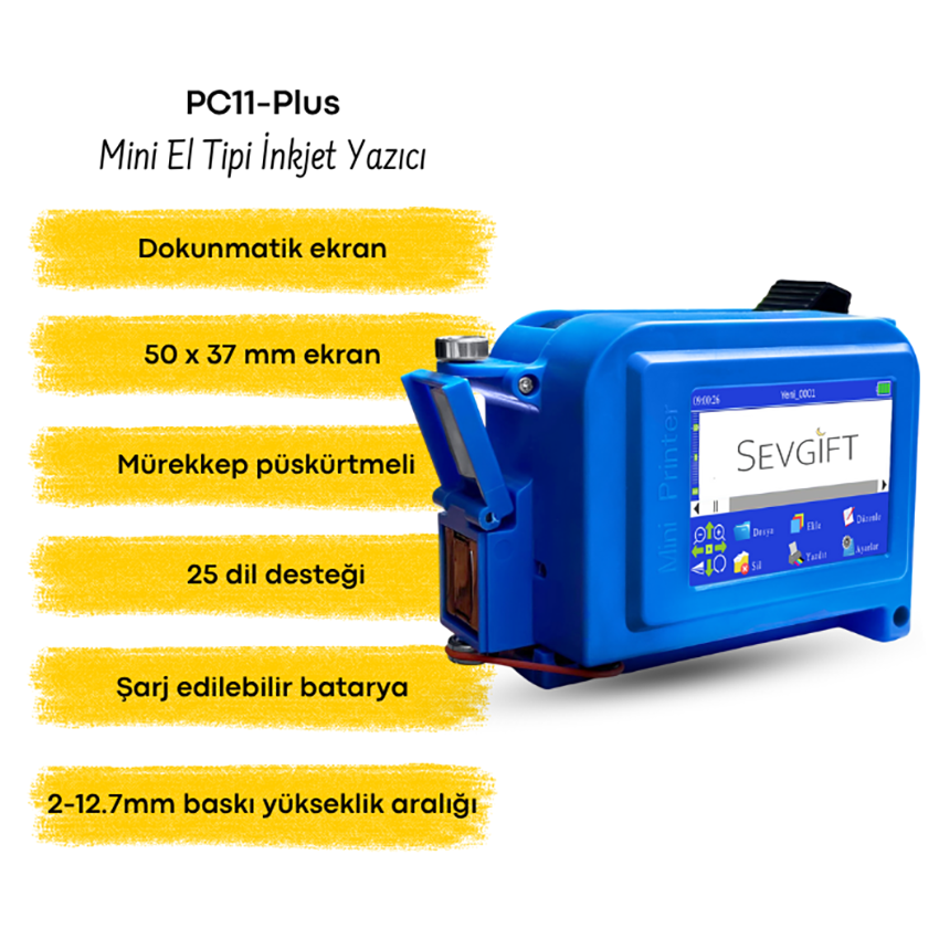 PC11-Plus Mini El Tipi Inkjet Yazıcı, dar alanlarda hızlı ve pratik baskı ihtiyaçlarına yönelik geliştirilmiş, taşınabilir bir çözümdür.