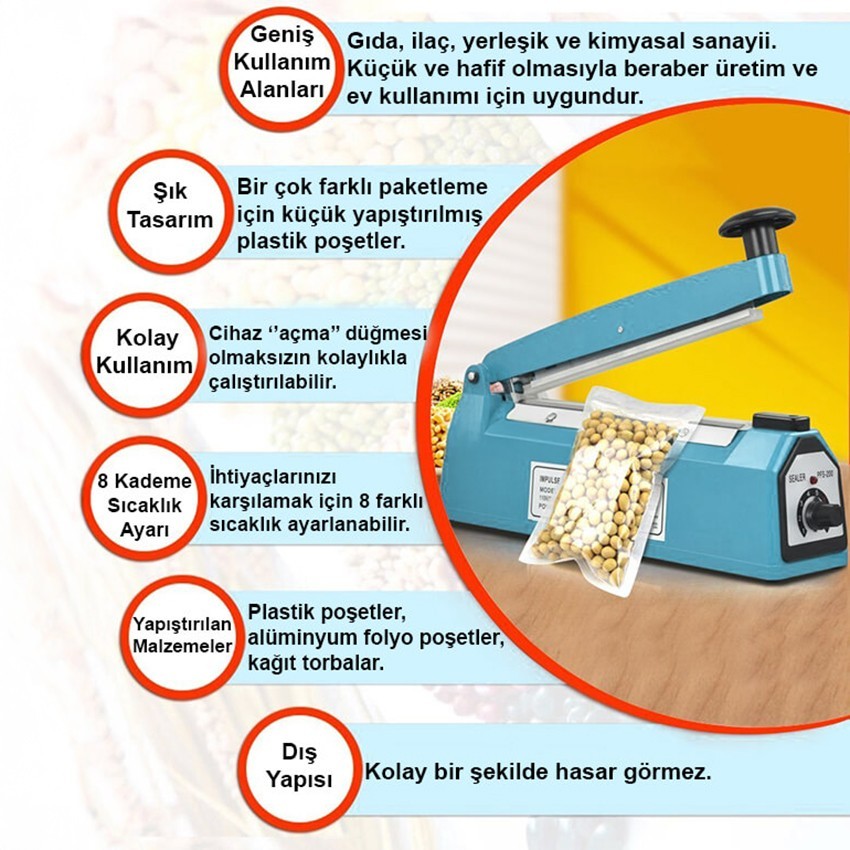Hawo ISZ 300 Maşa Tipi Poşet Kapatma Makinası; Farklı kalınlıklarda ki poşet ve folyoların kapatılmasında kullanılan, sızdırmazlığa uygun bir şekilde yapıştırma olanağı sağlayan el tipi yapıştırma makinasıdır.