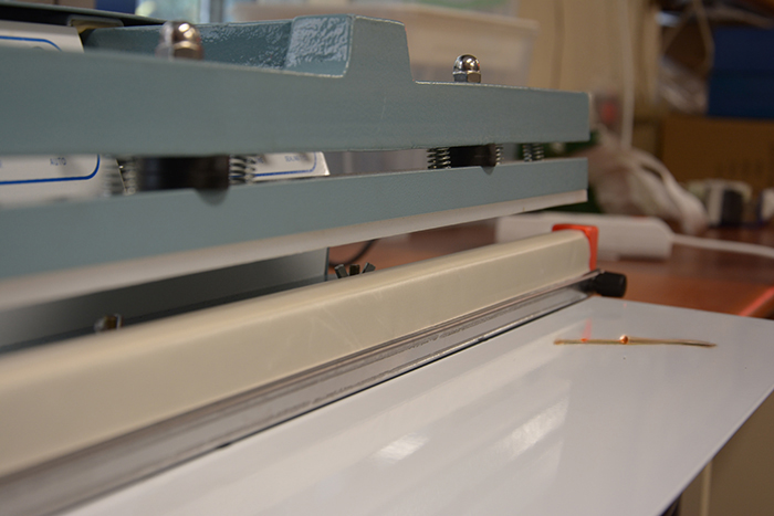 - Hualian PFS 450T folyo kapatma makinasının tek çenesi bulunmaktadır. Isıtma bölümü alt koldadır.