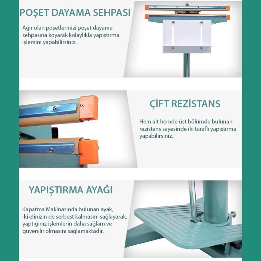 Kullanım Alanları: PFS 650X2 ayaklı poşet kapatma makinası, özellikle büyük ve kalın torbaların kapatılması gereken alanlarda kullanılır. Gıda, ilaç, endüstriyel ürünler, ticari ürünler, kimyasallar ve elektronik parçaların paketlenmesi için mükemmel bir tercihtir. Bu makine, depo ve fabrika ortamlarında kullanım için tasarlanmıştır ve poşet kapatma işlemlerini hızlı ve etkili bir şekilde gerçekleştirir.