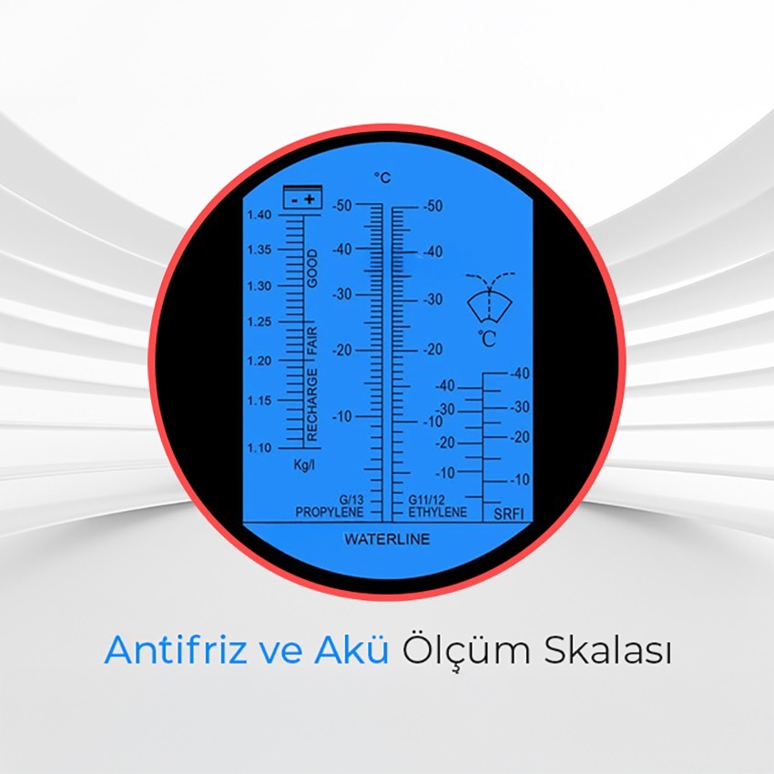 - SRF1 İzopropil alkol bazlı cam yıkama antifrizi ve Etanol bazlı cam yıkama antifrizi olarak -40 ile 0 °C arasında ölçüm yapmaktadır.