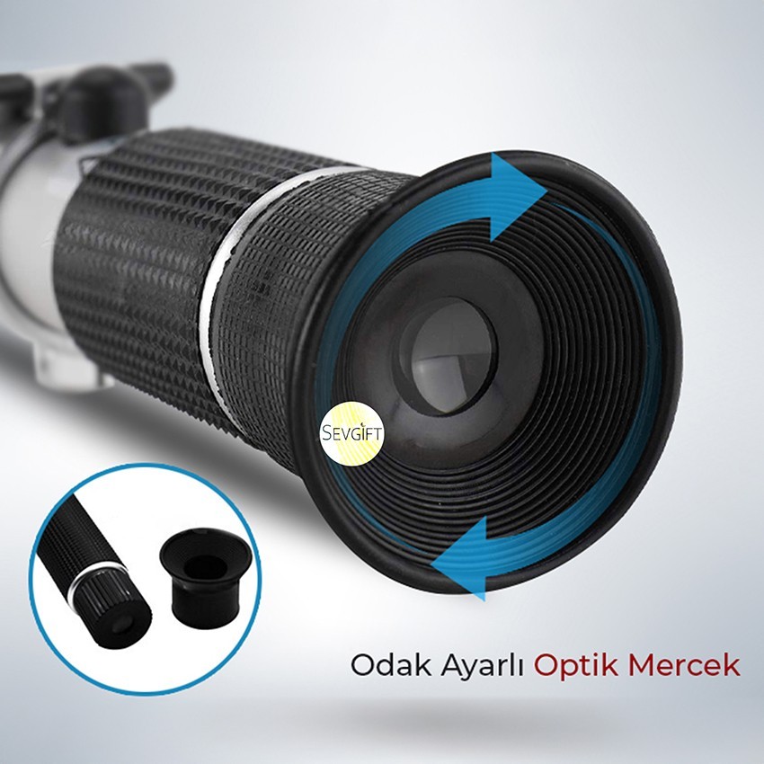 Refraktometreyi uç kısmında bulunan numunenin damlatıldığı eğik prizmanın bulunduğu taraf ışığa bakacak şekilde gövdeden tutarak elinize alınız ve kapak kapalı konumda iken cihazın dürbün bölümünü gözünüze konumlandırıp gördüğünüz ölçüm tablosundaki değeri okumaya çalışın. Görmüş olduğunuz değerler net değil ise dürbünün hemen üzerindeki ayar halkasını çevirerek ölçüm tablosunu sağa sola çevirip netlik ayarı yapabilirsiniz.