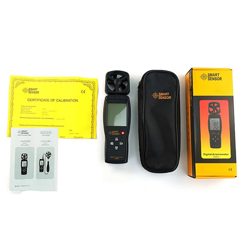 Smart Sensor AS 806 anemometre; rüzgar hızını ve sıcaklığını hızlı bir şekilde ölçebilen anemometre çeşididir. Geniş LCD ekranında ölçümlerinizi grafiksel olarak artan ve azalan olarak takip edebilirsiniz.