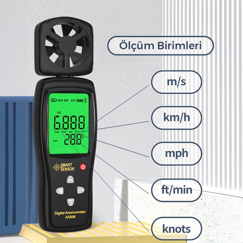 - Smart Sensor AS 806 anemometre ile rüzgar hızını ve sıcaklığını ölçebilirsiniz.