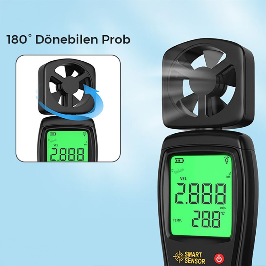 Smart Sensor AR 816 anemometre; rüzgar hızını ve havanın sıcaklığını hızlı bir şekilde ölçebilen, ekonomik fiyatlı portatif anemometredir.