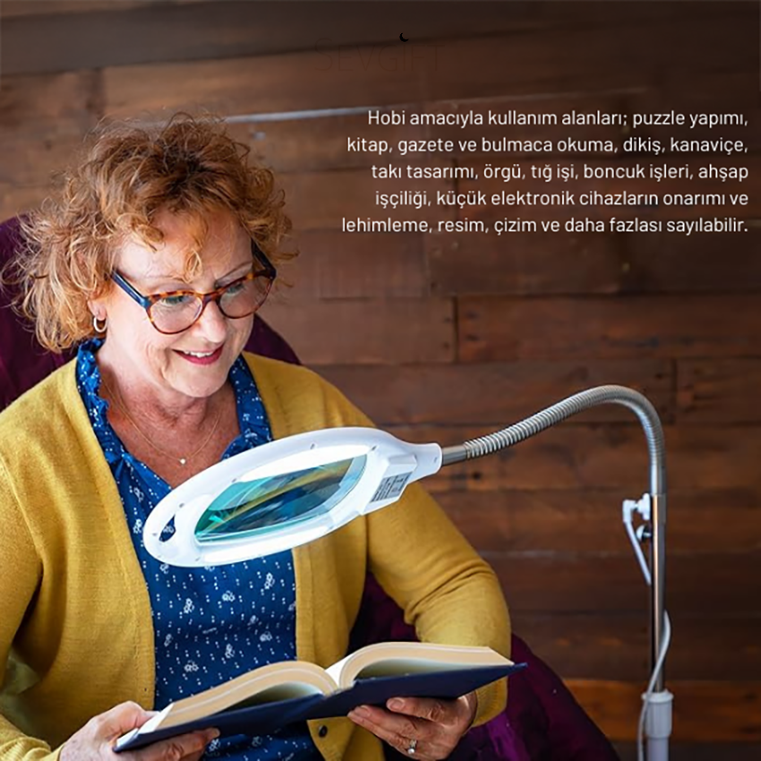 StandMag büyüteç modeli, esnek boyun yapısı sayesinde istenilen pozisyona kolayca ayarlanabilen, toplam 42 adet led ışık ile güçlü aydınlatma sağlayan,