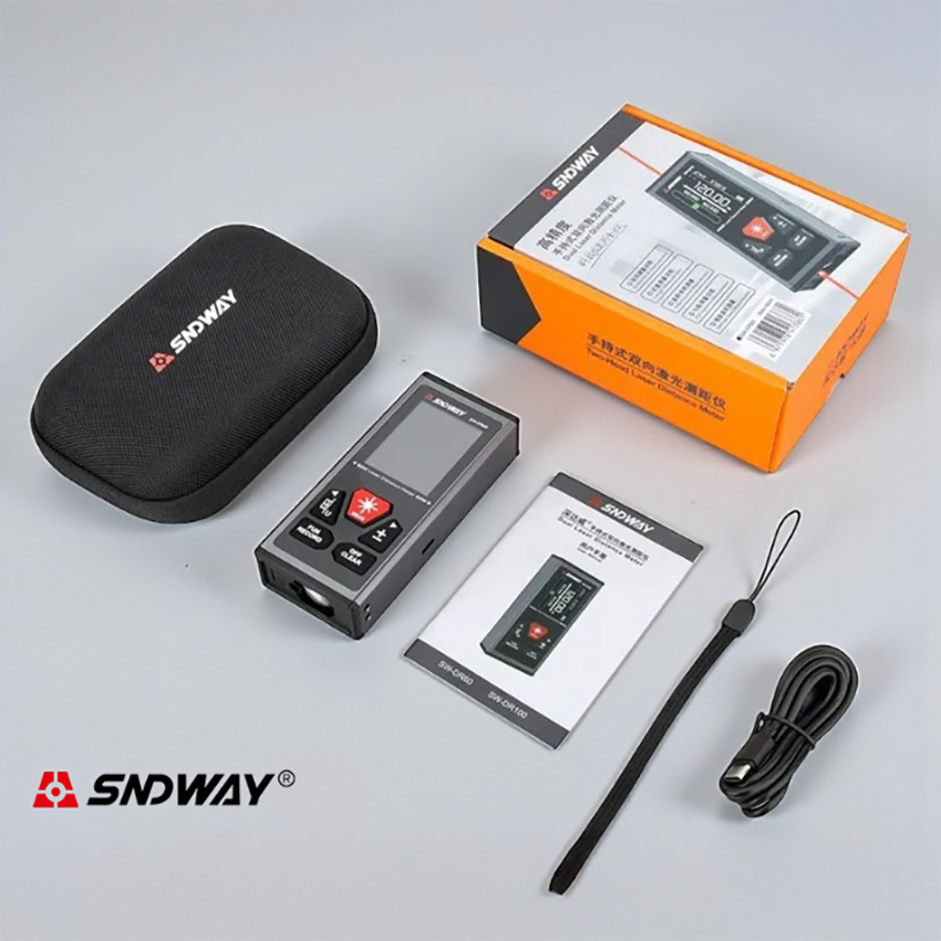 SNDWAY SW-T100 lazermetre; her türlü ortamda, farklı ölçüm modları ile 100 metreye kadar mesafe ölçümü yapabilen hassas elektronik lazermetre çeşididir.