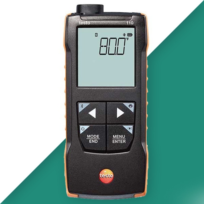 Teslimat Kapsamı: Testo 110 cihaz, bez taşıma çantası, üretici test sertifikası, 3 adet AA pil