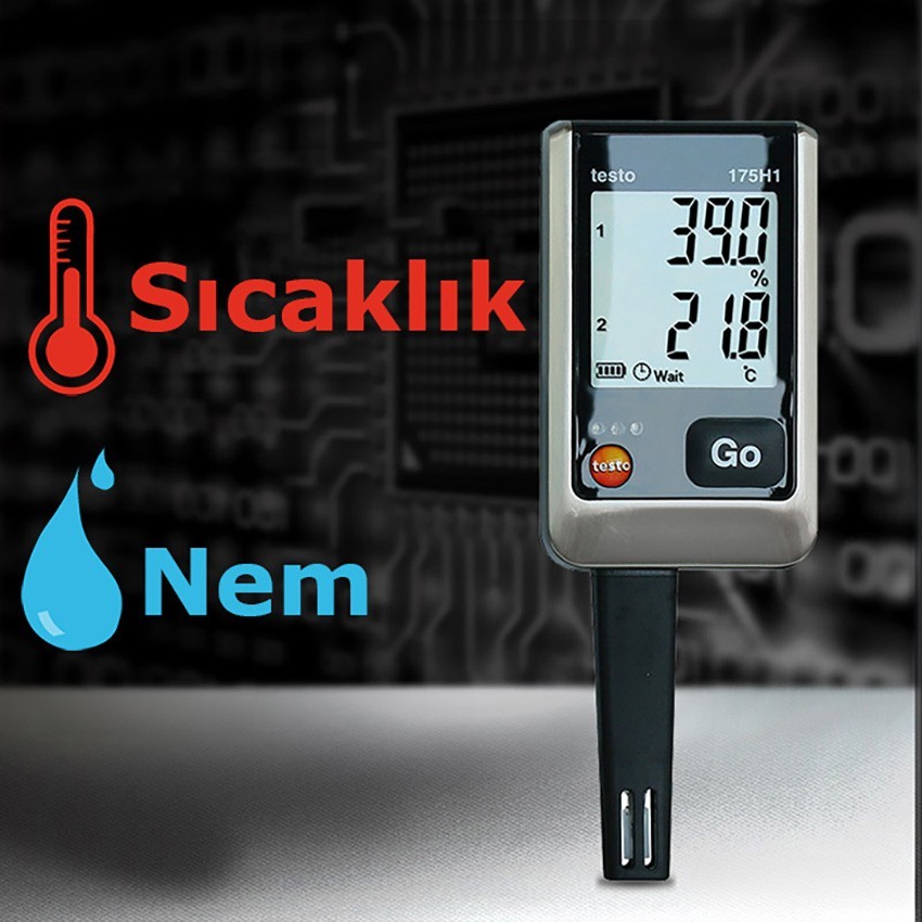 Testo 175 H1 datalogger; bulunduğu ortamın sıcaklık ve nem değerlerini kayıt altında tutmaya yarayan, anten tipi sabit harici sıcaklık ve nem sensörü ile yüksek hassasiyetli ölçüm yapan ısı ve nem kayıt cihazıdır.
