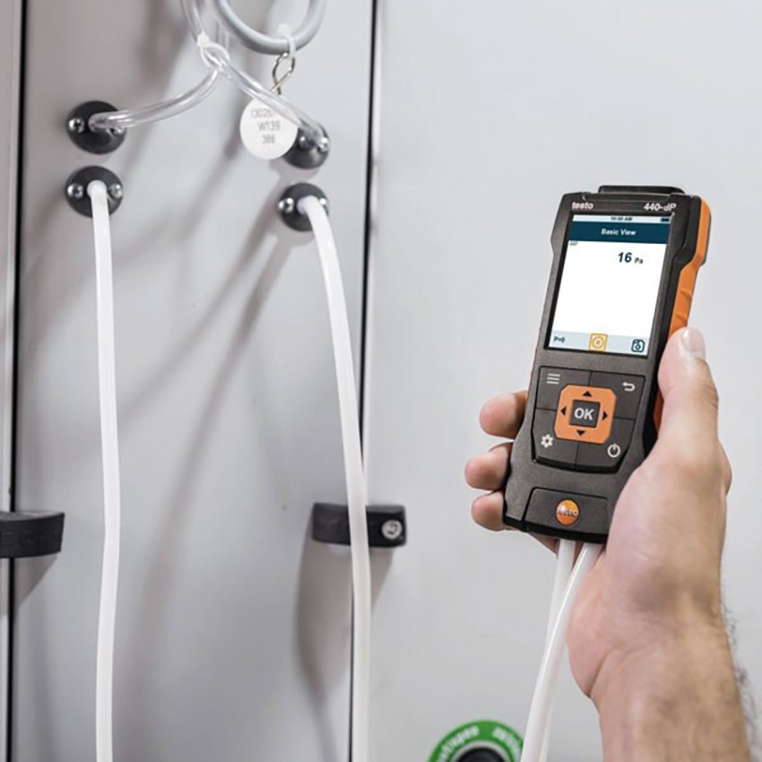 Testo 440 dP prob okuyucu cihaz, entegre sensörleri ile fark basınç ölçümü yapabilen, aynı zamanda Bluetooth ve kablolu problar ile sıcaklık, nem, hava hızı, CO2, ışık gibi birçok değerin ölçümünü gerçekleştiren akıllı bir okuyucu cihazdır.