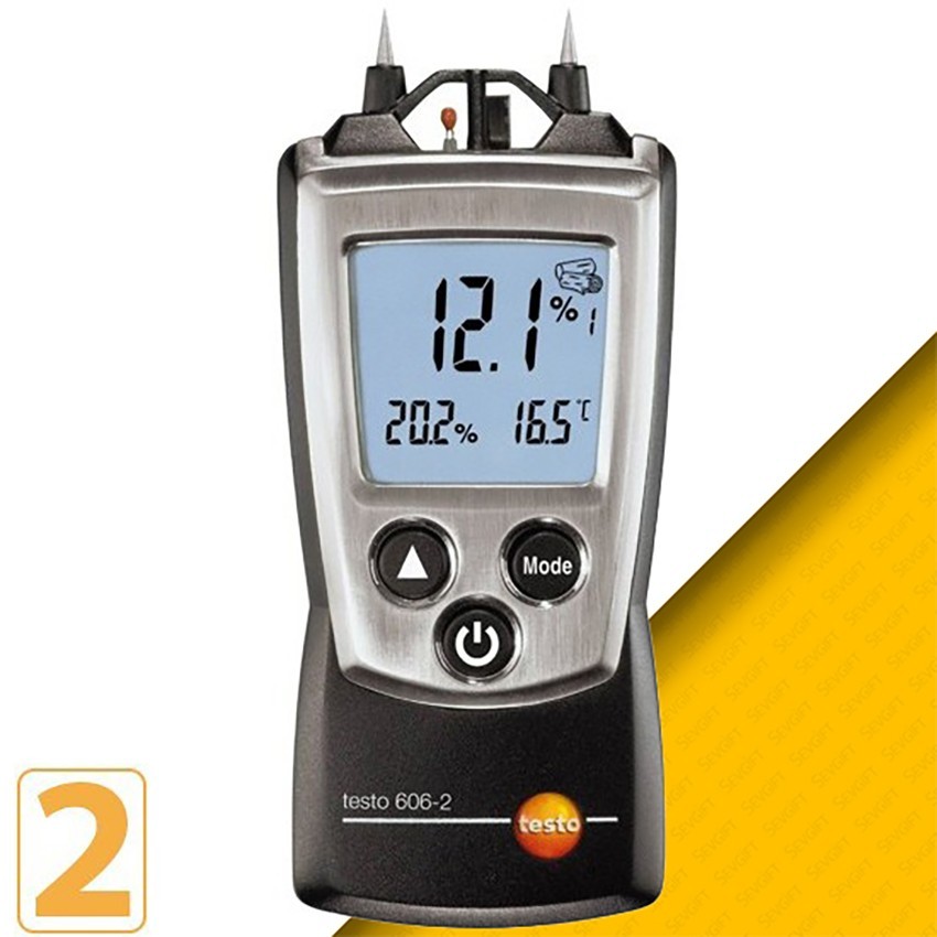 - Testo 606-2 ahşap rutubet ölçer; ahşap ve yapı malzemelerindeki nem içeriğini, malzemeye sıkıca tutturulmuş iki problu elektrotlar ile ölçer.