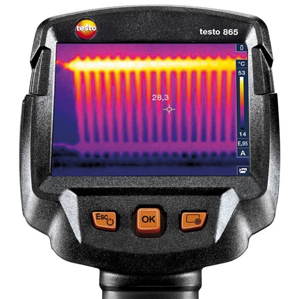 Testo 865 termal kamera, hizmet sektöründeki günlük işlerde hızlı ve verimli çalışmak için optimize edilmiş, kullanımı kolay ve profesyonel bir teknoloji sunan, fonksiyonel bir cihazdır.