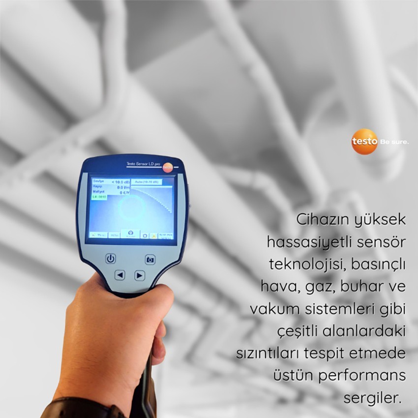 - Testo Sensor LD pro ultrasonik dedektör kiti, endüstriyel bakım ve güvenlik standartlarını en üst düzeye çıkaran, kullanıcı dostu ve yüksek performanslı bir cihazdır.