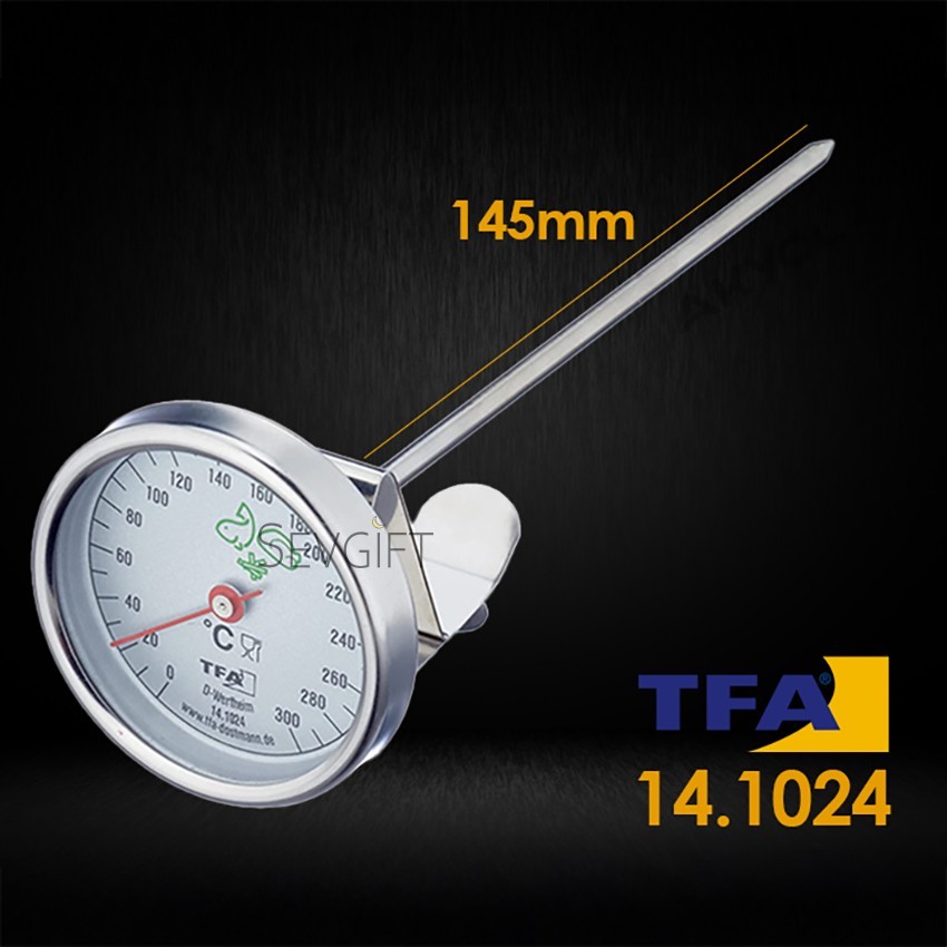 TFA 14.1023 analog süt köpüğü termometresi; genellikle kafelerde baristaların kullandığı sütün köpürme sıcaklığını ayarlamak için kullanılan termometre cihazıdır. Süt uygun sıcaklıkta ısıtılmaz ise yanabilir veya köpürmeyebilir.