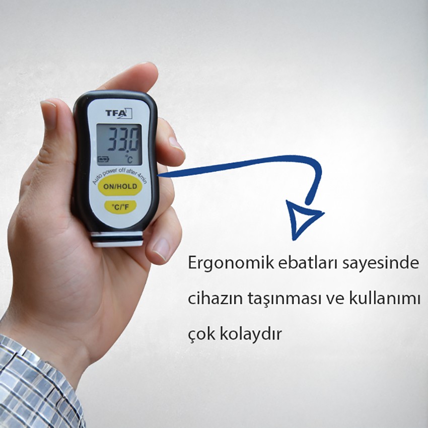 - ON/ HOLD butonu ile cihazı açabilir, ölçülen sıcaklık değerini ekranda sabitleyebilirsiniz.