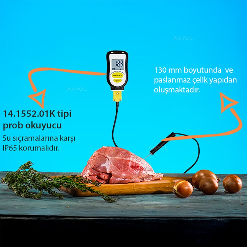 - Kutu içerisinden çıkan 30.3522 k tipi prob ile termometreyi sıvılarda ve gıdalarda sıcaklık ölçümü yapmak için kullanabilirsiniz.
