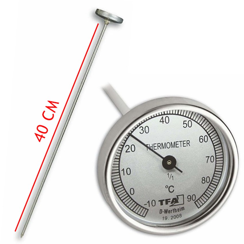 Tfa 19.2008 termometrenin prob uzunluğu 40 santimetredir. Kullanıcının termometreyi sıcaklık ölçülecek yığının