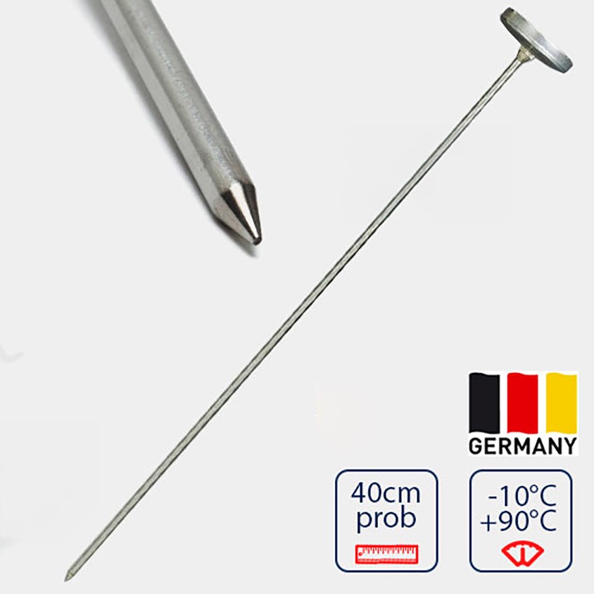 - Bu metal çubuklu termometrenin prob uzunluğu 40 santimetredir. Uzun bir prob, kullanıcının termometreyi kompost yığınının merkezine yerleştirmesine ve böylece daha doğru ve kapsamlı bir sıcaklık ölçümü yapmasına olanak tanır.