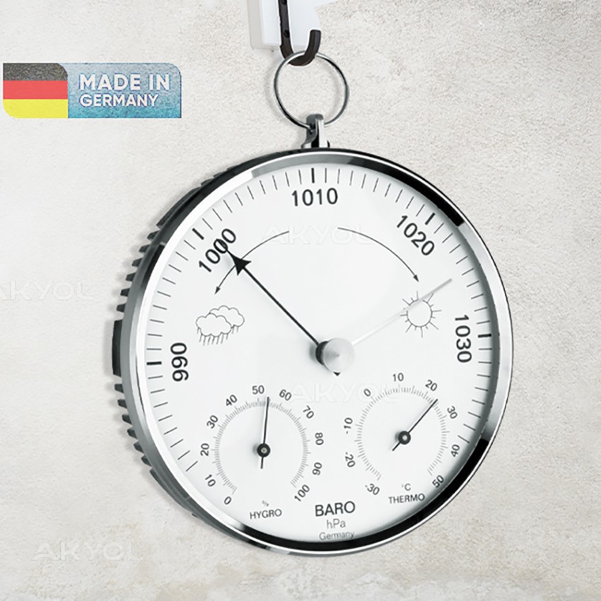 Tfa 20.1064.03 ibreli üçlü ölçüm cihazı; en üst kısmında nem, ortada basınç ve en altta da sıcaklık değerlerini aynı anda görebildiğiniz kaliteli bir ölçüm cihazıdır.