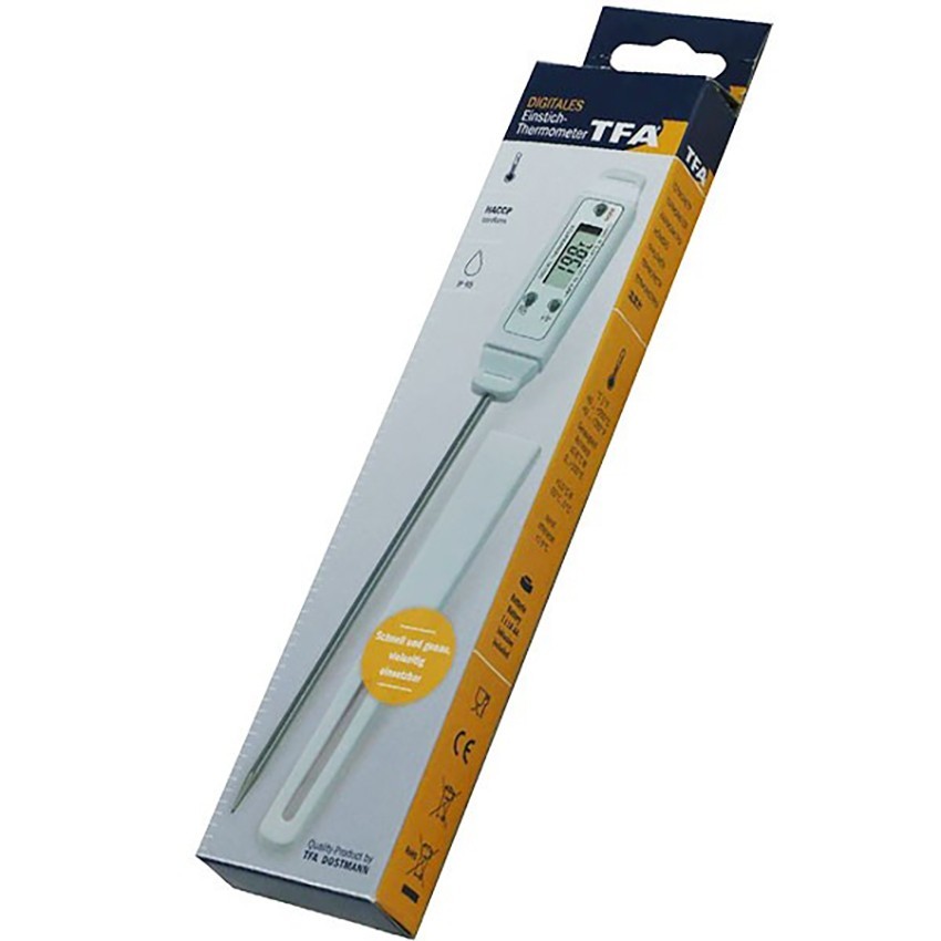TFA 30.1054.04 Gıda Termometresi; 14 cm prob uzunluğuna sahip, haccp gıda sertifikası bulunan, hassas ve hızlı ölçüm yapabilen saplama problu termometredir.