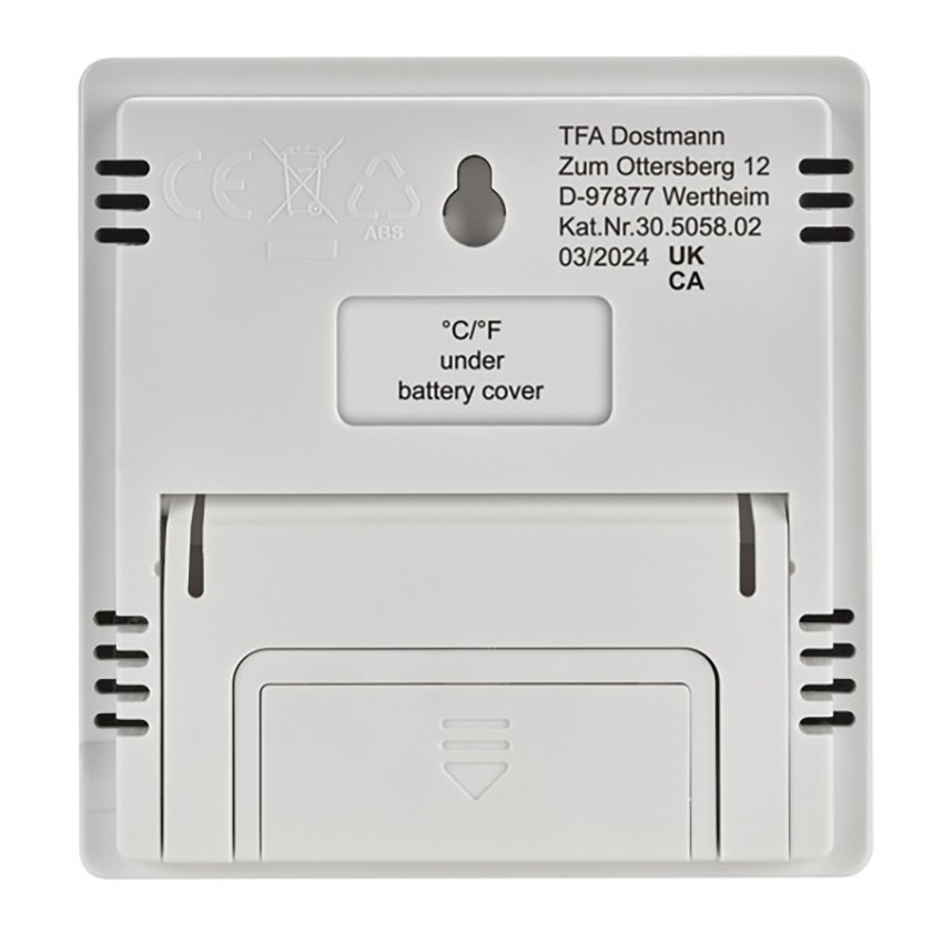 TFA 30.5058.02 ısı ve nem ölçer cihazını, arka bölümünde bulunan açılır ayak ile masa üzerinde kullanabilir veya arka tarafındaki askı deliği sayesinde duvara asabilirsiniz.