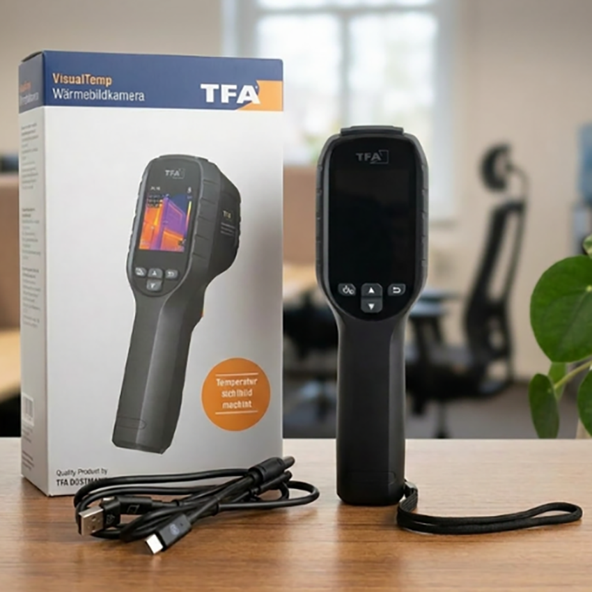 - TFA 31.1144.01 'VisualTemp' ekonomik seri termal kamera, yapı denetimi, elektrik bakım, HVAC kontrolü, mekanik sistem analizi ve genel endüstriyel sıcaklık taramaları için ekonomik fiyat-performans odaklı profesyonel bir çözüm sunar.