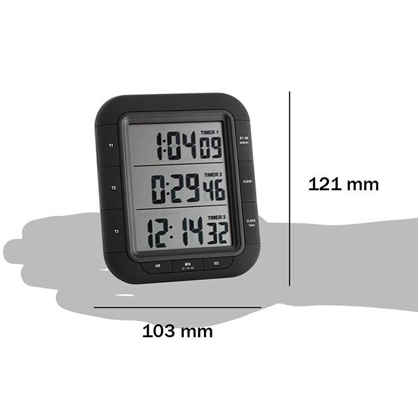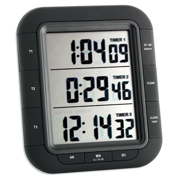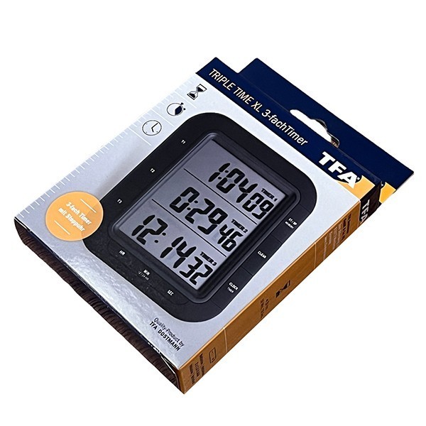 TFA 38.2023 zamanlayıcı cihazın; TIMER (Zamanlayıcı) modunda alt alta eş zamanlı çalışabilen birbirinden bağımsız 3 adet zamanlayıcısı bulunmaktadır. Bu zamanlayıcılar tamamlanıp sıfırlansa bile MEMORY butonuna basılarak geri getirilebilir.