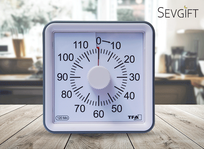 - Cihazın üzerinde bulunan döndürme mandalı ile, 1 - 120 dakika arasındaki istenen süreye göre kolayca ayarlanıp geri sayım işlemi başlatılabilir.