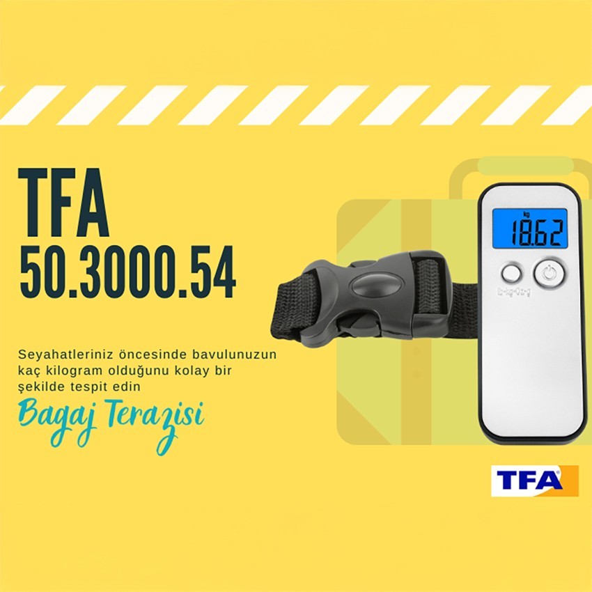 Tfa 50.3000.54 dijital bagaj terazisi, seyahatleriniz öncesinde bavulunuzun ağırlığını kolayca belirlemenizi sağlayan, 40 kg kapasiteli ve kompakt bir tartım cihazıdır. Havaalanında check-in sırasında ekstra ücret ödemekten ya da bagajınızı yeniden düzenlemekten kaçınmak için bu bagaj kantarı, bavulunuzun ağırlığını önceden ölçme fırsatı sunar. Seyahat dostu tasarımıyla, her gezgin için vazgeçilmez bir araçtır.
