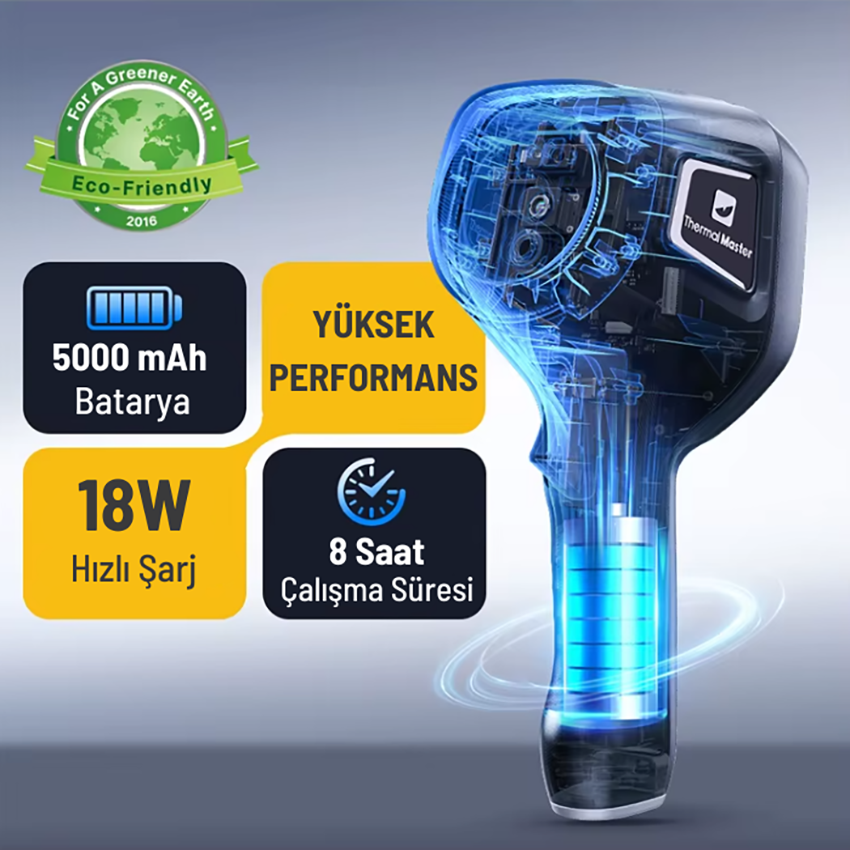 Thermal master thor002 termal kamera, 256×192 gerçek IR sensörü ve X³IR süper çözünürlük teknolojisi sayesinde görüntüyü 512×384 seviyesine yükselterek küçük sıcaklık farklarını dahi net biçimde görmenizi sağlar. Elektrik panoları, mekanik ekipmanlar, HVAC sistemleri ve bina denetimlerinde hızlı arıza tespiti için geliştirilmiştir.