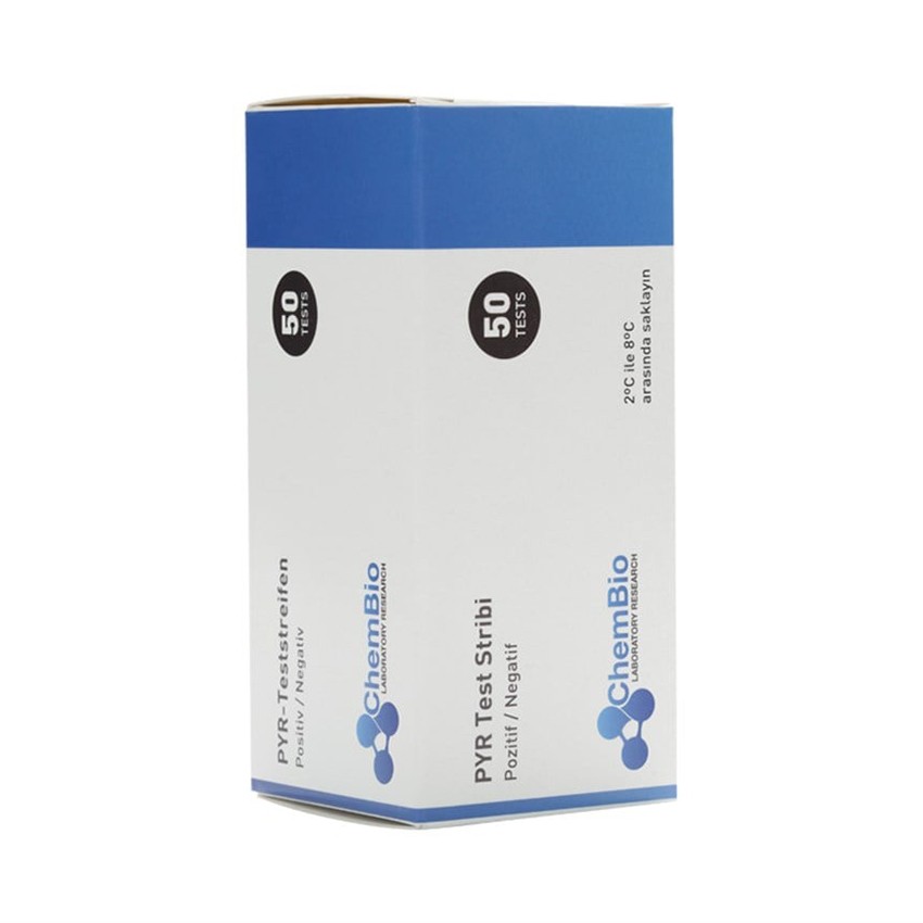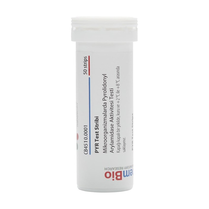 PYR test şeridi ile bakterilerde pyrrolidonyl arylamidase aktivitesini hızlı şekilde tespit edin. Klinik ve laboratuvar kullanımı için ideal hızlı tanı test kiti.