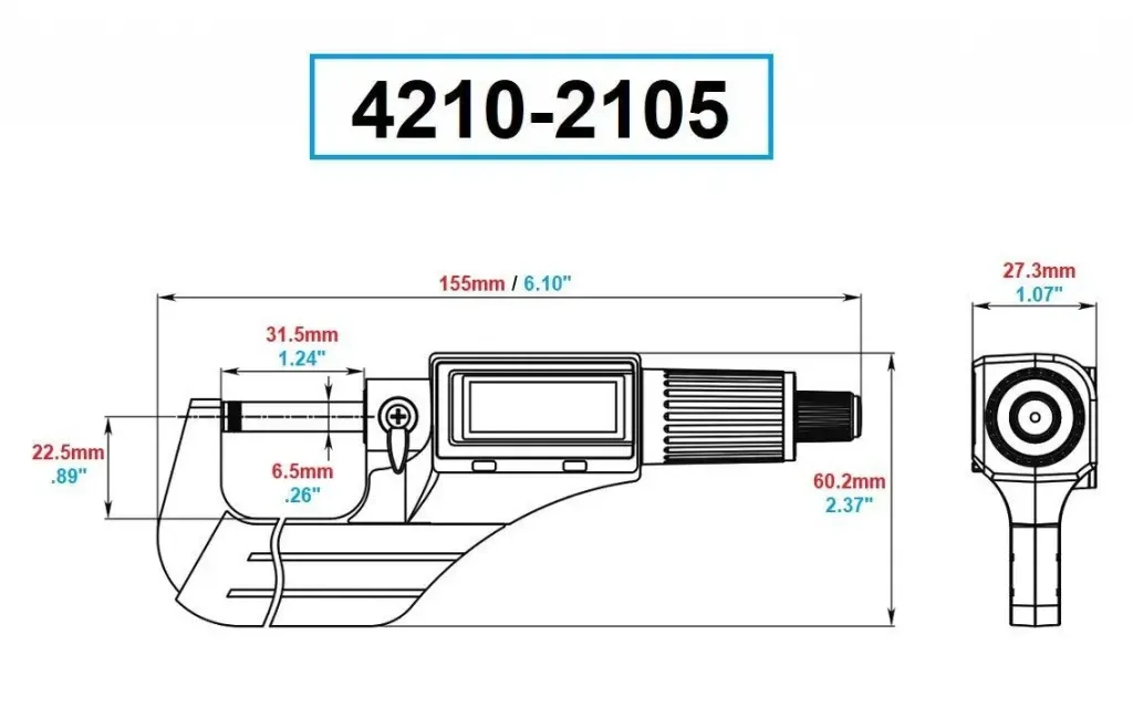 - Dasqua 4210-2105 dijital mikrometre; hem inç hemde mm ile ölçüm yapabilmektedir.