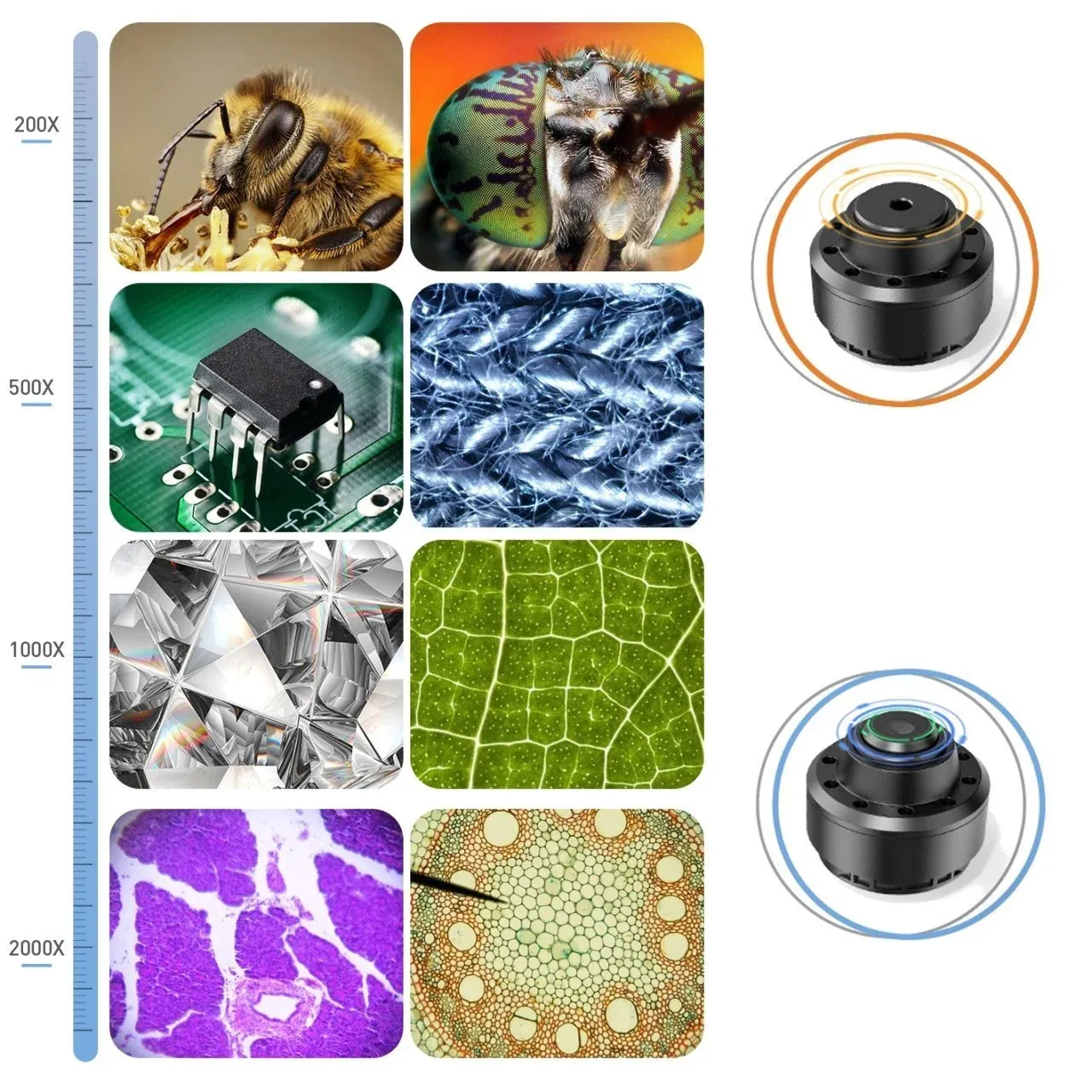 Biyolojik ve endüstriyel tip, Toplam 2000x büyütme, LED Aydınlatmalı