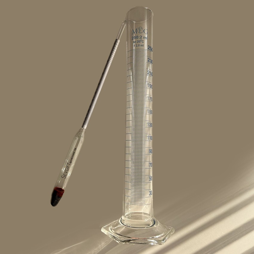 250 ml cam mezür ve hassas cam alkolmetre seti ile sıvı yoğunluğu ve alkol oranını kolayca ölçün. Laboratuvar, gıda üretimi ve ev tipi ölçümler için ideal profesyonel ölçüm seti.