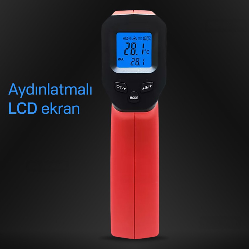 - Aydınlatmalı ekranı ile lazerli sıcaklık ölçüm cihazını karanlık ortamlarda kolayca kullanabilirsiniz.