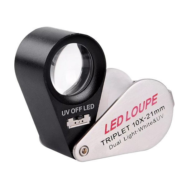 Triplet 10x profesyonel kuyumcu büyüteci, adından da anlaşıldığı üzere genellikle kuyumcuların, altın, mücevher, değerli taş vb. gibi nesneleri inceledikleri el tipi bir büyüteç modelidir.
