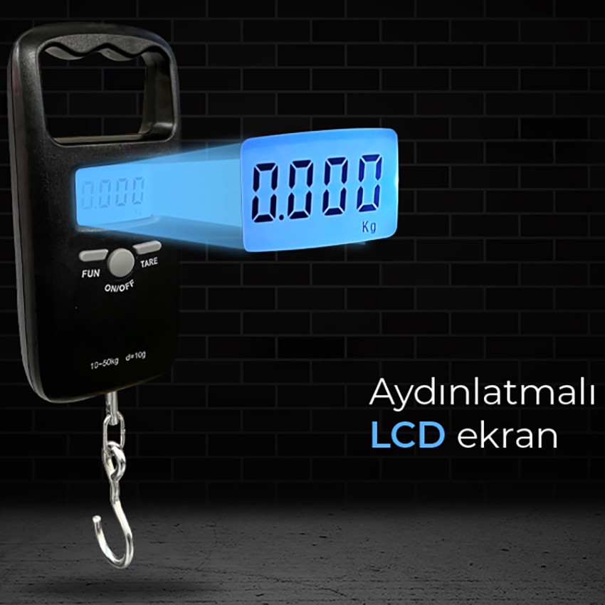 - Dijital el tartısı alt kısmında bulunan çengel şeklindeki yapısı ile 50 kilograma kadar ağırlık ölçümü yapabilmektedir.