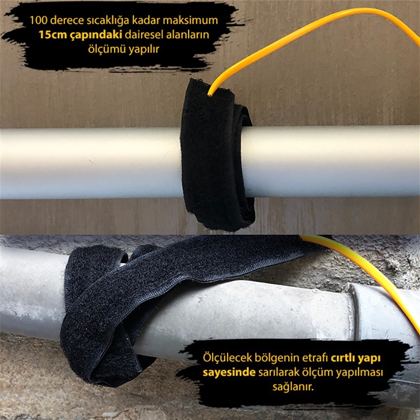 - Cırtlı yapı sayesinde ölçümü yapılacak bölgenin etrafı sarılarak sıcaklık takipi yapılabilmesi sağlanır.