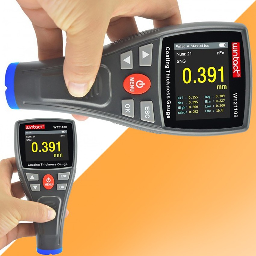 Wintact WT2110B boya kalınlık ölçer, yüksek çözünürlüklü renkli ekranıyla metal ve metal olmayan yüzeylerdeki kaplamaların kalınlığını ölçebilen bir cihazdır. Renkli ekran boya kalınlık ölçer, yüksek çözünürlüklü kalınlık ölçer, ve metal yüzey kalınlık ölçüm cihazı aramalarında öne çıkar.
