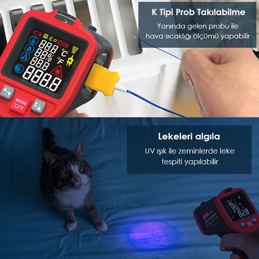 Sanayi, bakım ve teknik uygulamalar için geliştirilen kızılötesi termometre cihazları ile sıcaklık ölçümlerini kolaylaştırabilir, arızaları hızlı şekilde tespit ederek iş süreçlerinizi optimize edebilirsiniz.