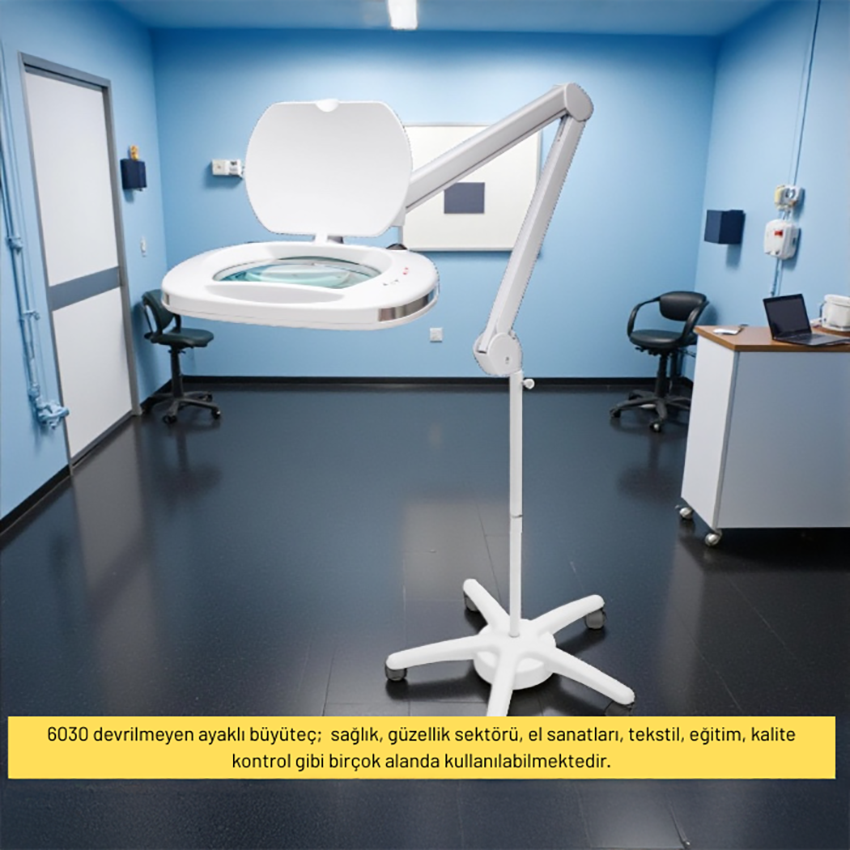 - 6030 ayaklı büyüteç, medikal, güzellik salonları, maket yapımı, el sanatları, elektronik montaj, saatçilik ve diğer hassas işçilik gerektiren uygulamalarda detayların net şekilde görülmesini sağlayarak kullanıcıya ideal bir çözüm sunar.