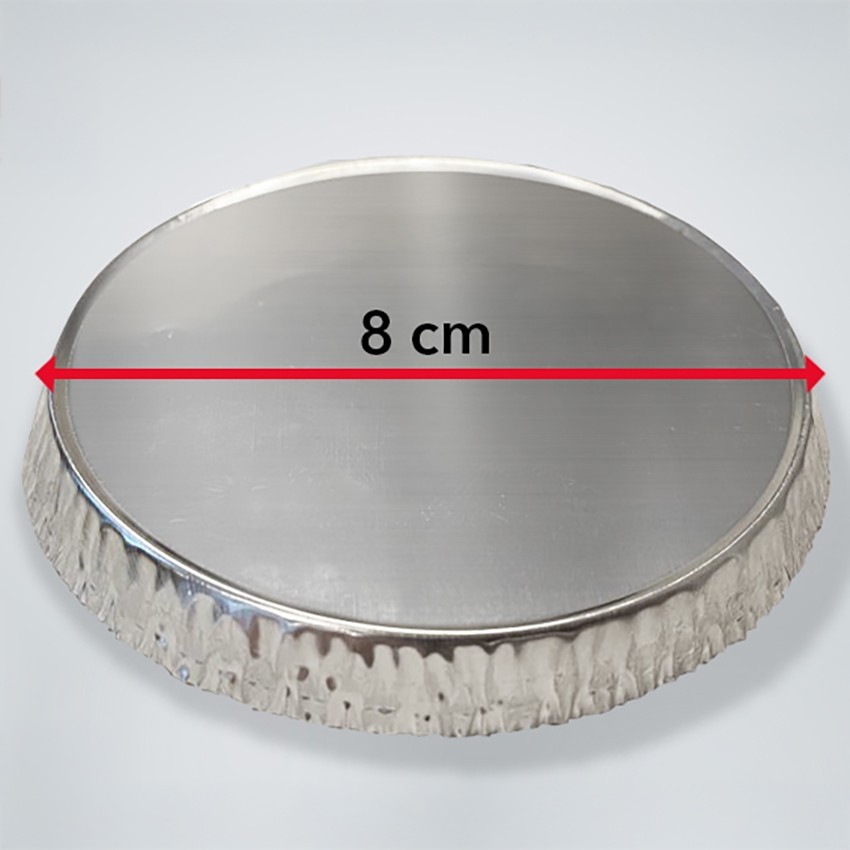 - Alüminyum numune kabı üst taraftan 8.5 cm çapında, taban bölümünden ise 8 cm çapındadır. Yüksekliği 1 santimdir.