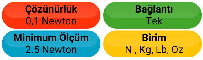 500 newton yani 50 kilogram kapasite ile itme ve çekme testi yapılabilir.